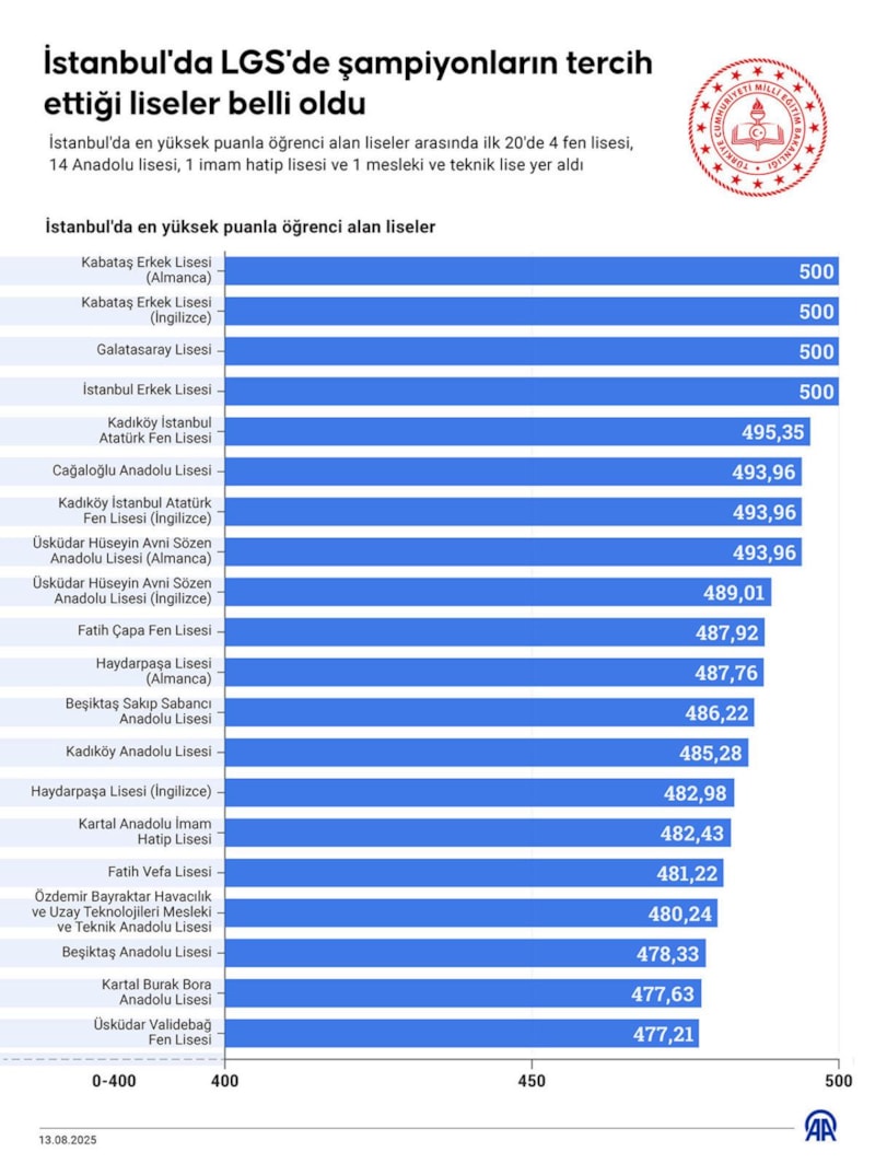 İşte 2025 yılında İstanbul’da en yüksek puanla öğrenci alan 20 lise:
