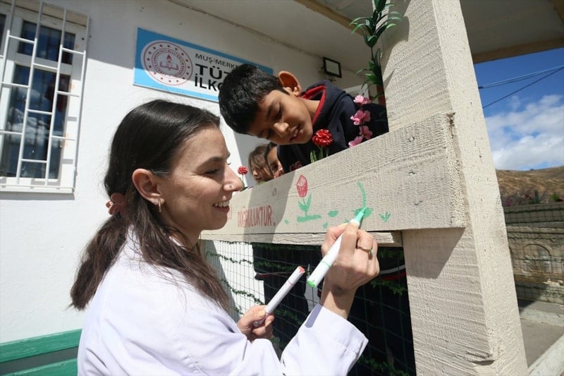 Öğrenciler ise öğretmenlerinin yaptıkları çalışmalardan memnun olduklarını dile getirerek, okulun kısa sürede büyük bir değişim geçirdiğini ve öğretmenlerine teşekkür ettiklerini ifade etti.