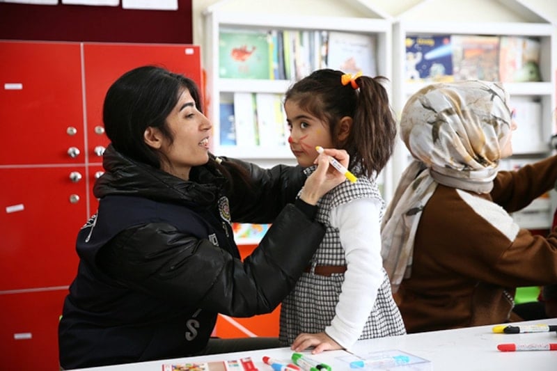 Meryem Yavaş ise polislerin okula gelmesiyle günlerinin daha da güzelleştiğini belirterek teşekkür etti.
