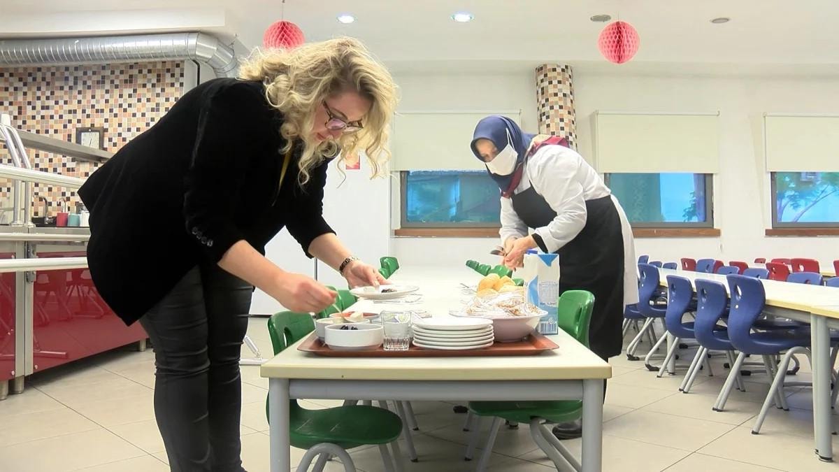 Kahvaltı ve öğlen yemeği, yemekhanelerde yapılan çalışmalarla öğrenciler için hazırlandı.