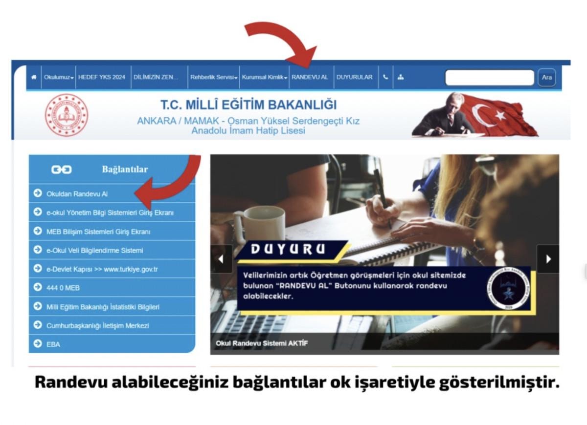 Veliler, öğretmen görüşmeleri için e-devlet kullanıcı bilgileriyle okulların internet sitelerinden randevu alabilecek.