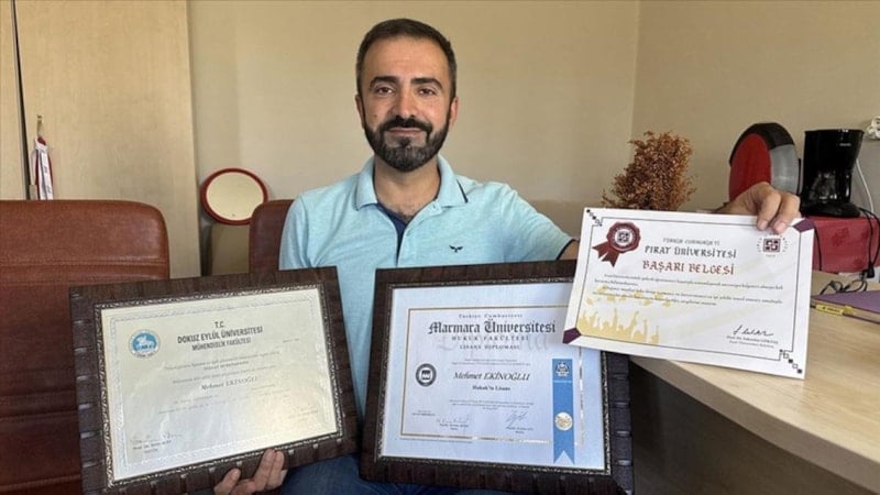 Elazığ’da yaşayan 45 yaşındaki Mehmet Ekinoğlu, ortaokul yıllarında tanıdığı İbn-i Sina’nın bilime olan katkılarından etkilenerek, hayatını eğitime adadı. Bu hayranlık, onu üç farklı alanda üniversite mezunu yapacak uzun ve zorlu bir yolculuğa çıkardı.