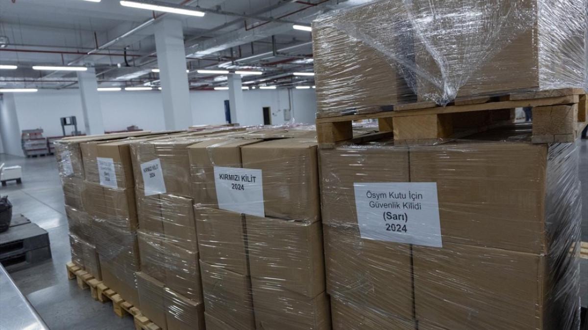Merkezde günde 200 bin soru kitapçığı basılıyor. Poşetlenerek RFID ile takip edilen kutulara yerleştirilen sınav evrakları, elektromekanik kilitlerle tırlara yüklenerek anbean takip edilerek merkezlere gönderiliyor.