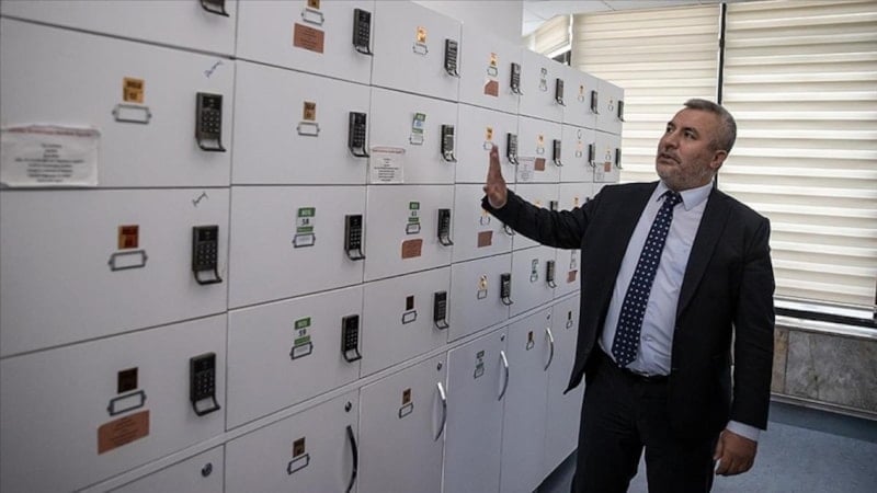 Sınav güvenliğinin sağlanması için soru yazarları, yanlarında hiçbir materyal olmadan x-ray cihazları ve el dedektörleriyle arandıktan sonra avuç içi tarama ve yüz okuma sistemlerinden geçerek kırmızı alana alınıyor.