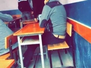 Sınıfta öğretmen varken sanki yokmuş gibi davranan öğrencilere, bir yenisi daha eklendi. Oturdukları sırayı alıp duvara vuran öğrenciler, aynı zamanda maymun sesine benzer sesler çıkardı.