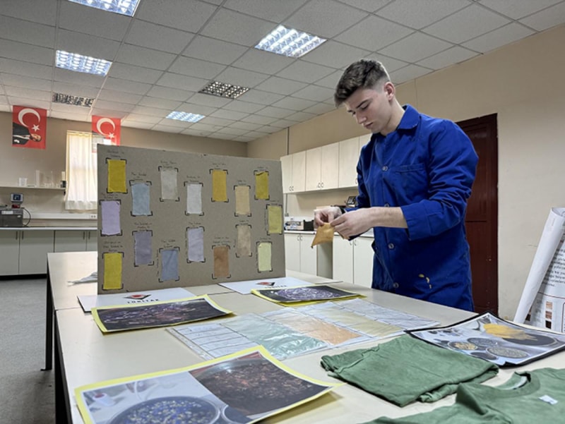 Çerkezköy Türk Tekstil Vakfı Mesleki ve Teknik Anadolu Lisesi'nin tekstil bölümü öğrencileri Yasin Güllü ve Arif Sertbinici, çevreye zararlı kimyasallar içermeyen doğal boyaların üretimine odaklanarak çalışmalarına başladılar.