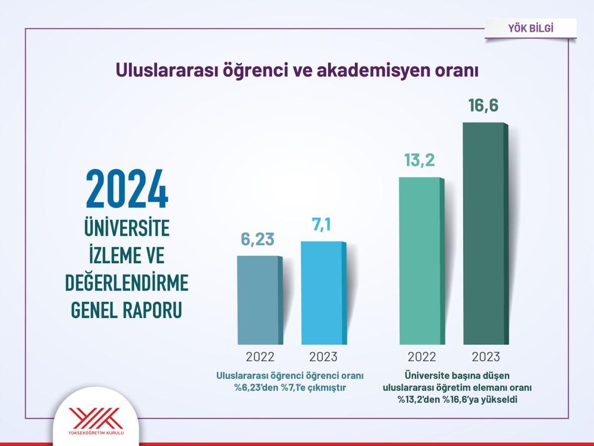 2022 yılında Times Higher Education (THE) sıralamasında Türkiye'den 58 üniversite yer alırken, 2023 yılında bu sayı 75'e yükseldi. Quacquarelli Symonds (QS) sıralama sisteminde ise 2022'de 24 üniversite bulunurken, 2023'te 25 üniversite sıralamada yer aldı. Ayrıca, THE'da 3, QS'te ise 2 Türk üniversite, dünyanın ilk 500 üniversitesi arasına girme başarısını gösterdi. Türkiye'deki üniversitelerde uluslararası öğrenci ve öğretim elemanı sayısında artış kaydedildi. Uluslararası öğrenci oranı yüzde 6,23'ten yüzde 7,1'e yükselirken, değişim programları kapsamında Türkiye'ye gelen öğretim elemanı sayısı da arttı.
