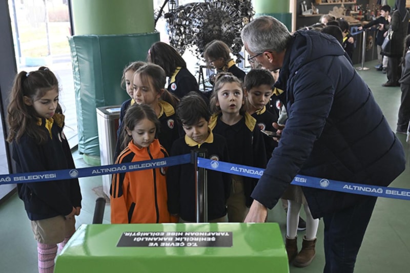 Sergi alanında yer alan kompost makineleriyle organik atıkların geri dönüştürüldüğünü aktaran Kahraman, Altındağ’daki pazar yerleri ve hallerden toplanan atıkların komposta dönüştürüldüğünü belirterek, bu kompostun park ve bahçelerde kullanıldığını çocuklara uygulamalı olarak anlattıklarını kaydetti.