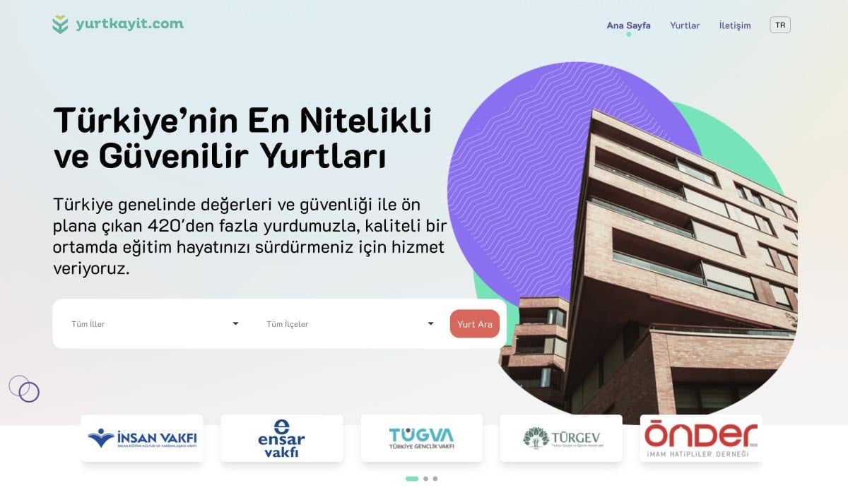 Adayın filtreleme yöntemiyle en uygun yurdu bulması sağlanan platformda TÜGVA, TÜRGEV, İlim Yayma Cemiyeti gibi kurumların da yurtları bulunuyor.