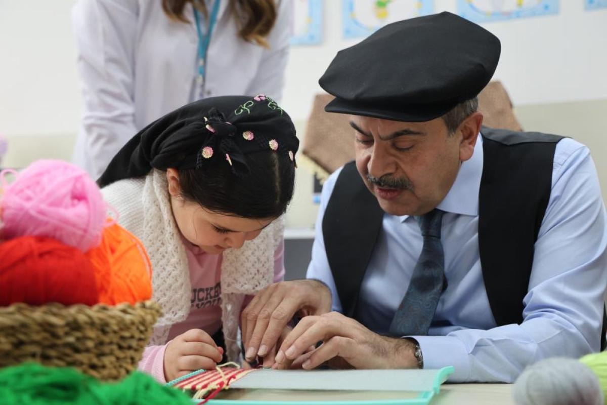 Öğrencilerin yöresel kıyafetlerine uyan Bakan Tekin, 8 köşe kasket takıp yelek giydi. Ardından diğer etkinlik atölyelerini gezen Bakan Tekin, minik öğrencilerle uzun süre ilgilenip muhabbet etti.