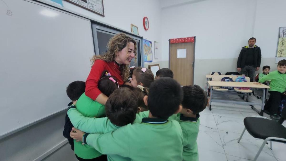 Ayrıca 1-F sınıfı öğrencileri adına dikilen bir fidanın hatırasını anlatan bir sertifika da Figen Kocaaslan'a hediye edildi. Kocaaslan da gözyaşlarıyla birlikte mutluluğunu kendisine sarılan öğrencileriyle paylaştı.