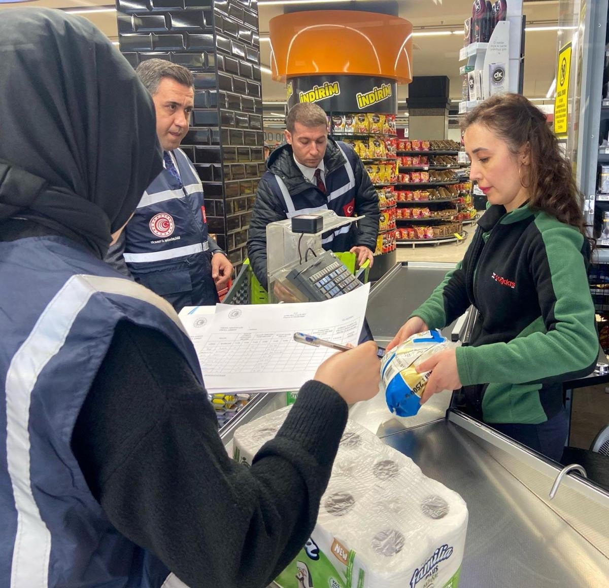 Ekipler; manav, kasap ve temizlik reyonlarında bulunan temel ürünlerin etiket fiyatlarını kontrol etti, not aldı.