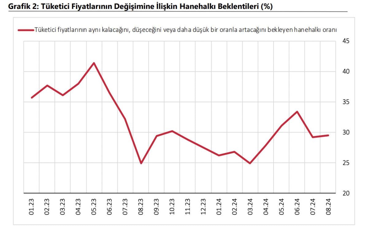 Gelecek 12 aylık dönemde enflasyonun düşeceğini bekleyen hanehalkı oranı bir önceki aya göre 0,3 puan artarak yüzde 29,6 seviyesinde gerçekleşti.