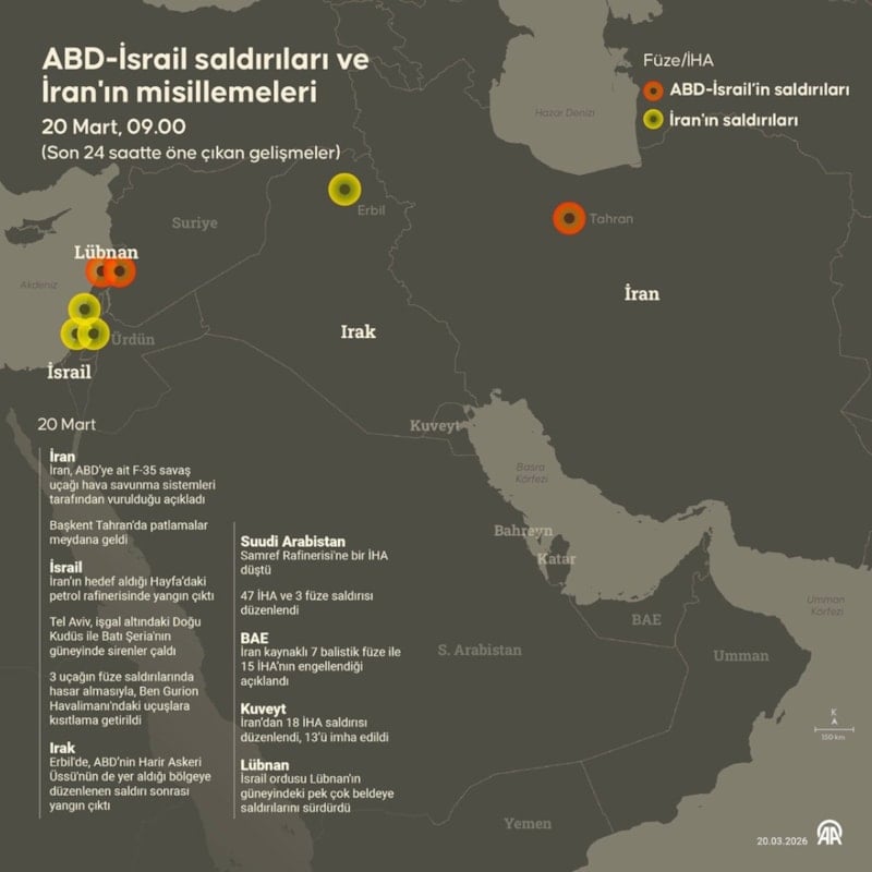 İran da İsrail'in yanı sıra ABD üslerinin bulunduğu Katar, Birleşik Arap Emirlikleri ve Bahreyn başta olmak üzere bazı bölge ülkelerinde belirlediği hedeflere saldırılarla karşılık verdi.