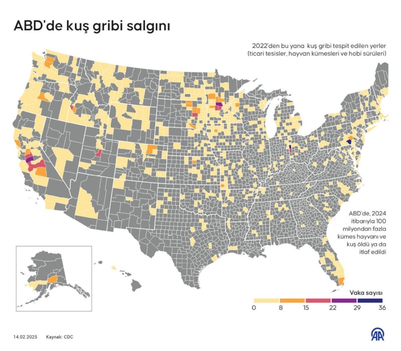 2022'den bu yana ABD genelinde ticari tesisler, hayvan kümesleri ve hobi sürülerinde kuş gribi tespit edildi.