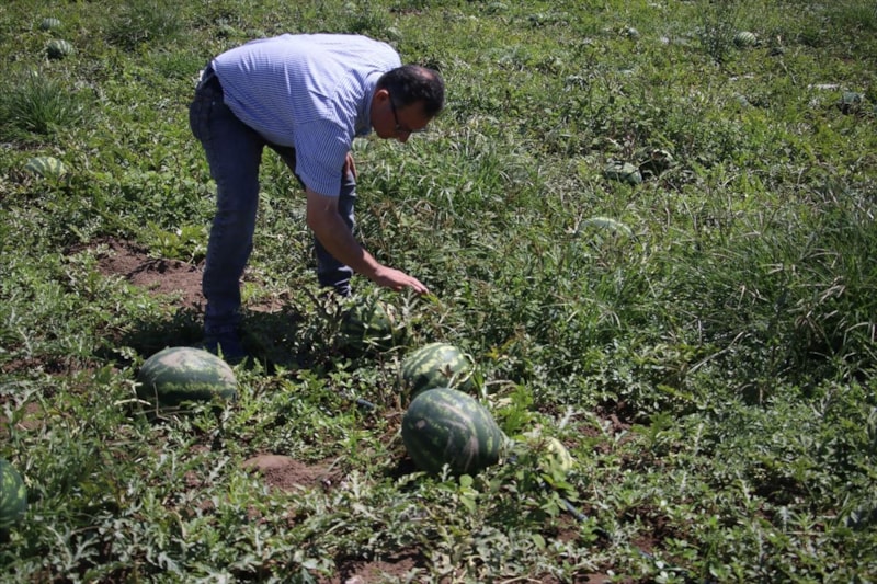 Tarlalarda olgunlaşmamış karpuz imha ediliyor