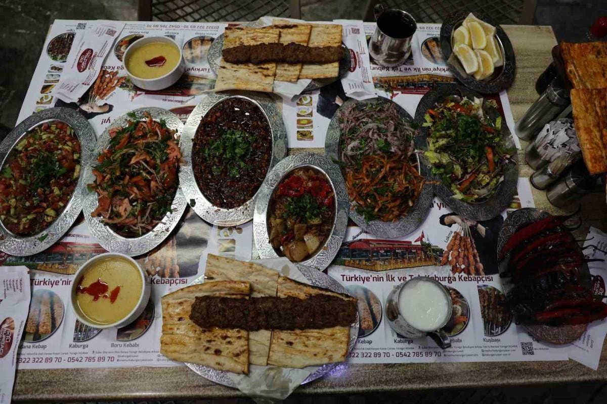 Adana’nın en ünlü yemeği olan, coğrafi işaretli "Adana kebabı’, uzun yılardır neredeyse tüm restoranlarda mevsim, soğan, ezme, kaşık ve tablacı salatasının yanı sıra pişmiş soğan, biber, domates, gibi mezelerle servis ediliyor. Yanında yaklaşık 8 çeşit mezeyle sunulan Adana kebap, iftarda hem gözü hem de mideyi doyuracak.