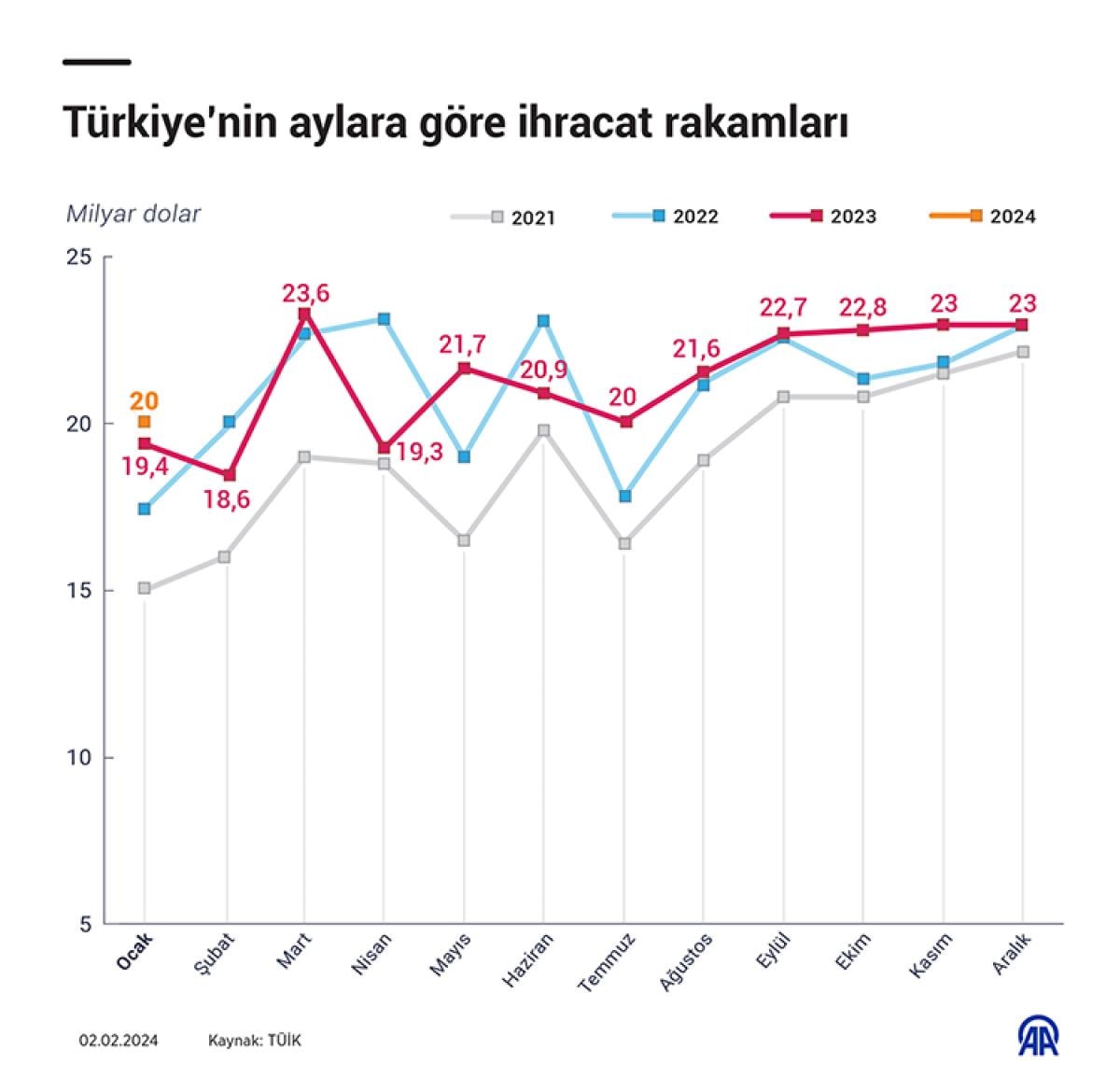 Bu tutar, tüm zamanların en yüksek ocak ayı ihracatı olarak kayıtlara geçti.