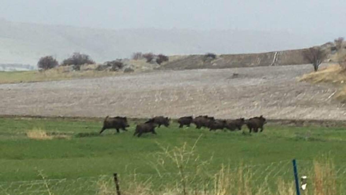 Ekili tarım arazilerinde görülen domuz sürüleri mahsullere ciddi oranda zarar veriyor.