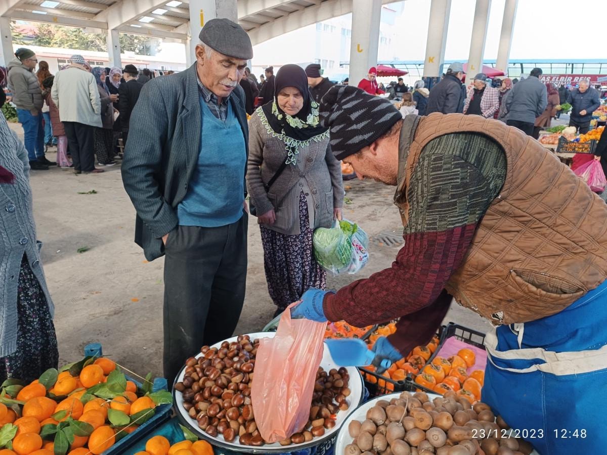 Pazara gelen vatandaşların ise fiyatını biraz yüksek gördükleri kestaneden genellikle yarım kilogram aldıkları gözlendi.