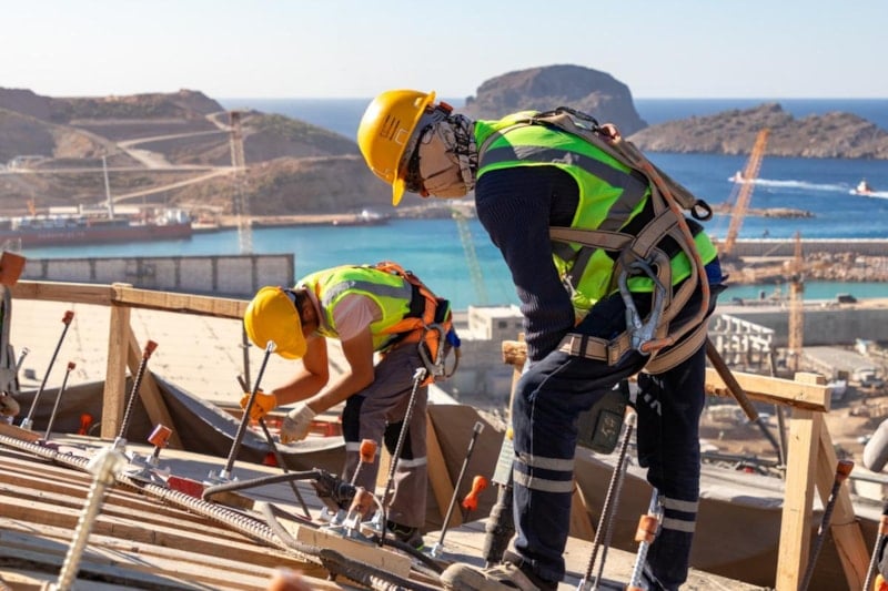 Betonlama işleminde iki kule vinç, altı beton dağıtım bomu ve 34 beton mikser kamyonu kullanıldı.