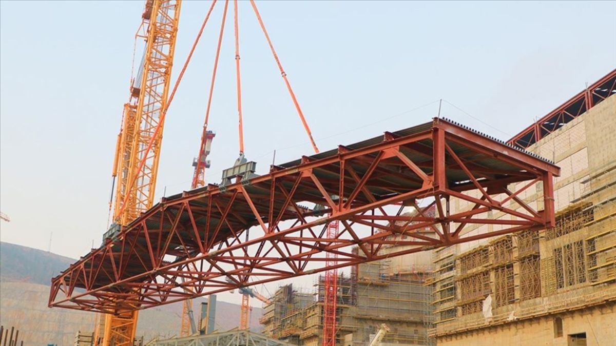 Türkiye'nin ilk nükleer enerji santrali Akkuyu Nükleer Güç Santrali'nin çatı döşemesi de dahil olmak üzere toplam ağırlığı 1140 ton olan 9 genişletilmiş kirişten oluşan türbin binası çatısında kurulum süreci, 10 Aralık 2022'de başladı.