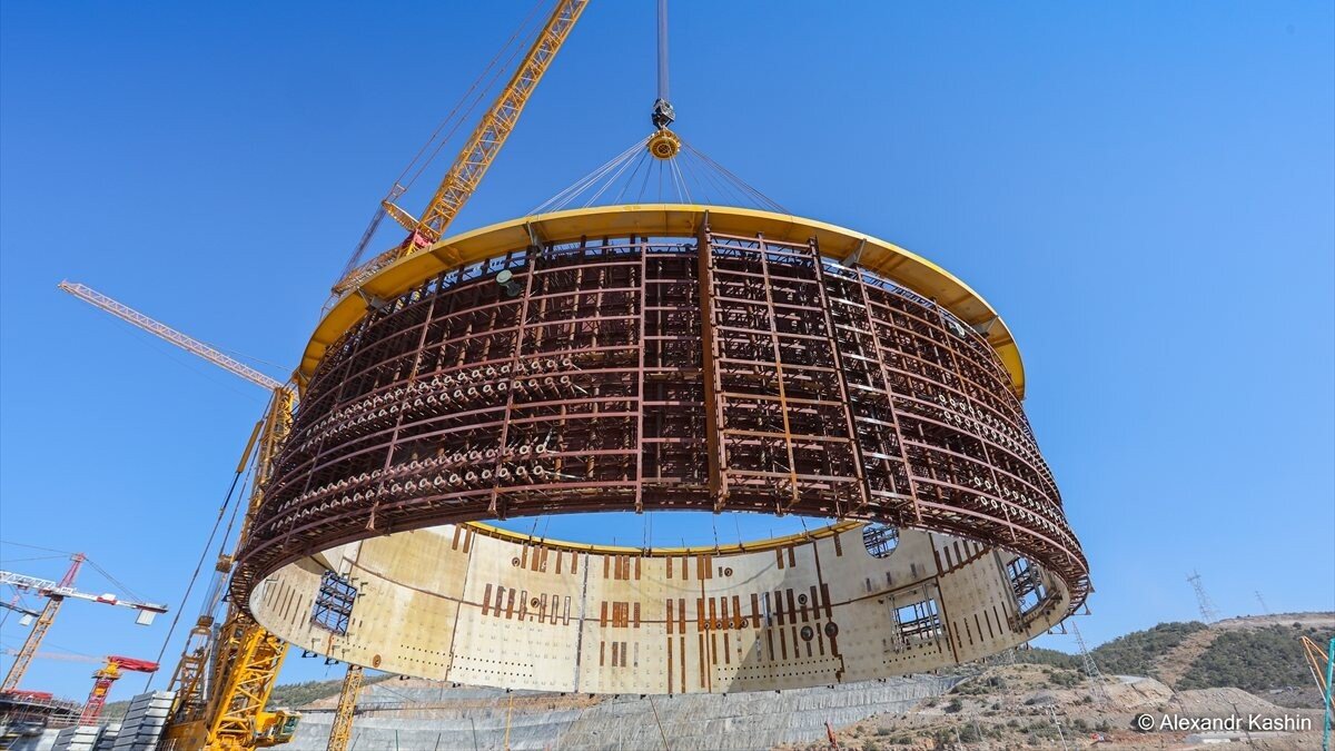 Bölümlerin, daire uzunluğu 138 metre olan tek bir blok halinde birleştirildiği aktarılan açıklamada, "Yapının montaj işlemi, birinci güç ünitesinin reaktör bölümünün yanında yapıldı. Montajın tamamlanmasının ardından tüm kaynak bağlantılarının kalitesi ultrasonik teste tabi tutuldu.