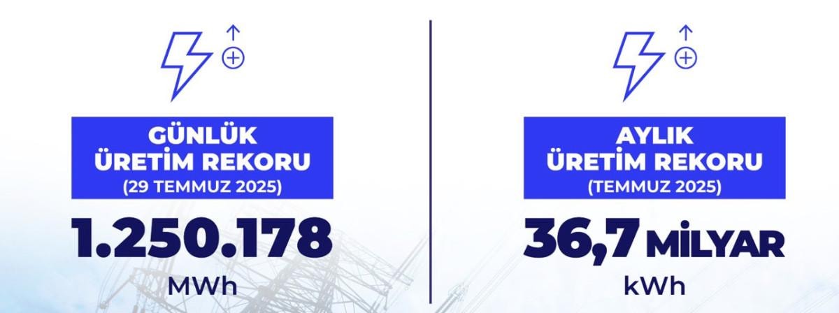 Enerji ve Tabii Kaynaklar Bakanı Alparslan Bayraktar, kurulan üretim rekorunu,"Elektrik üretiminde hem günlük hem de aylık bazda rekor kırdık. 29 Temmuz’da günlük üretimimiz 1 milyon 250 bin megawatt saat seviyesine ulaştı. Aylık üretimimiz ise 36,7 milyar megavatt saat ile tüm zamanların en yüksek seviyesini gördü." şeklinde açıkladı.