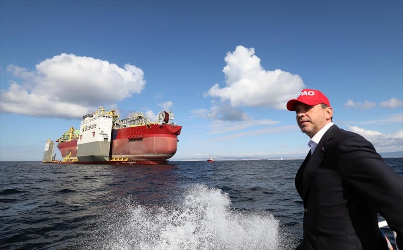 Türkiye'nin geçen yıl satın aldığı yüzen doğalgaz işleme ve nakil tesisinin Çanakkale'ye ulaşmasının ardından Enerji Bakanı Alparslan Bayraktar, tesis ve Sakarya gaz sahasındaki üretimin durumu hakkında açıklamalarda bulundu.