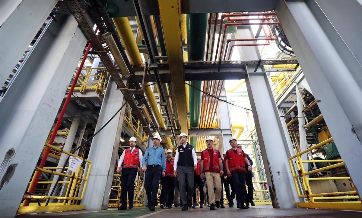 Bayraktar, platformdaki incelemelerinin ardından tesisin helikopter pistinde yaptığı açıklamada, Türkiye Cumhuriyeti tarihinde bir ilke şahitlik ettiklerini söyledi.