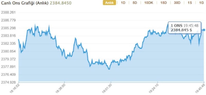 Ancak ABD’de borsanın açılması ile beraber ons altında 2.352 dolara kadar düşüş meydana geldi. Bu düşüş uzun süreli olmadı ve ons altın kademe kademe yükselerek şu anda 2.384 dolar seviyesinde işlem görüyor.