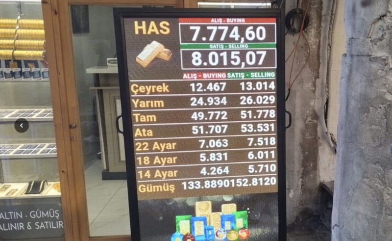 Gram altın: 7 bin 572 lira (İstanbul Kapalıçarşı'da 8 bin 15 lira)