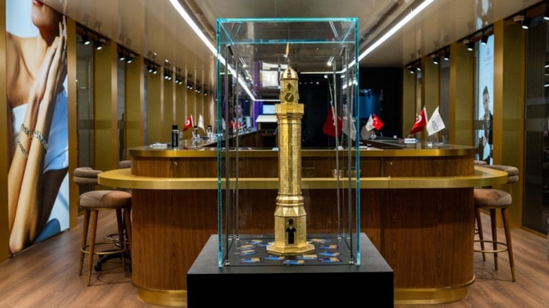 Bu yıl da 80 cm yüksekliğinde ve 20 cm genişliğindeki Çorum Saat Kulesi kaidesi 6,3 kilogram 14 ayar altın kullanılarak el işçiliğiyle 26 günde yapıldı. Hem kültürel anlamı hem de teknik detaylarıyla öne çıkan eser, Ahlatcı Kuyumculuk’un geçmişten bugüne uzanan mirasını modern tasarım diliyle yorumlama ustalığını bir kez daha gösterdi.