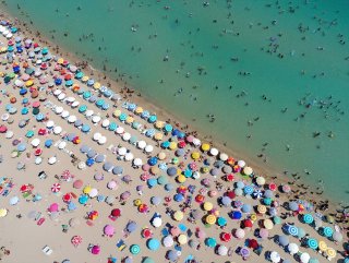 Halka açık plaja vatandaşların güneşten korunmak için getirdiği farklı renklerdeki şemsiyeler, altın rengi kumlar üzerinde renk cümbüşü oluşturuyor. Plajı yer yer tamamen kaplayan şemsiyelerin hava çekimlerindeki görünümü, kumun üzerine sıralanmış boncukları andırıyor.