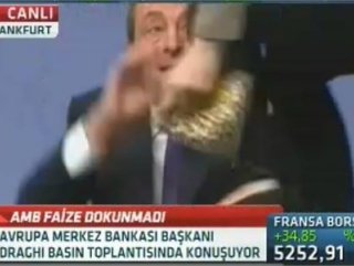 Avrupa Merkez Bankası Başkanı Mario Draghi'ye basın toplantısı sırasında saldırı gerçekleştirdi.