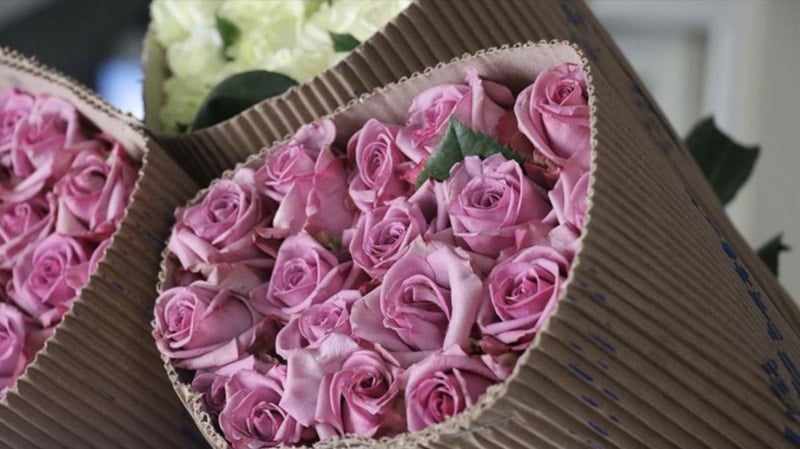Seralardan toplanan kırmızı ağırlıklı çiçekler, depolarda paketleniyor, satışa hazır hale getiriliyor.