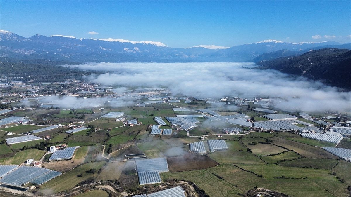 Antalya'nın Kaş ilçesinde halk arasında "kör duman" adıyla anılan ve akşam saatlerinde başlayıp ertesi gün öğle vaktine kadar dağılmayan yoğun sis, örtü altı üretim yapan çiftçilere uygun iklim koşulu sağlıyor.
