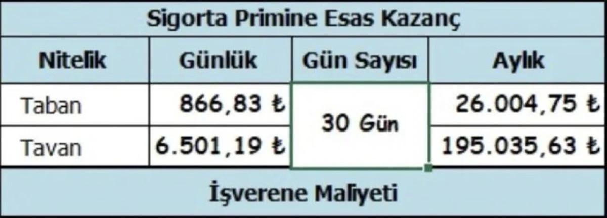 Brüt 26 bin 5 lira 50 kuruş olan asgari ücrete, 4 bin 30 lira 85 kuruş SGK primi (işveren payı) ile 520 lira 11 kuruş işveren işsizlik sigorta primi kalemleri de eklenince yeni asgari ücretin bir işçi için işverene aylık maliyeti 30 bin 556 lira 46 kuruş oldu.