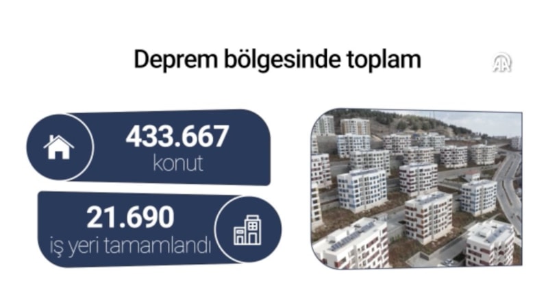 Deprem bölgesinde, bugüne kadar gerçekleştirilen kura törenleri sonucu toplam 433 bin 667 konut ile 21 bin 690 iş yerinin kurası tamamlandı.
