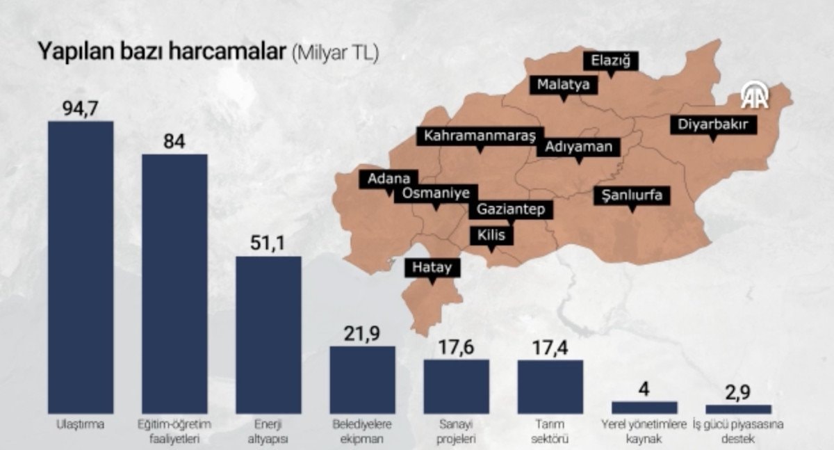 - Cumhurbaşkanlığı Strateji ve Bütçe Başkanlığı'nın raporuna göre, Kahramanmaraş ve Hatay depremlerinin etkilerini hafifletmek amacıyla 3 yılda 3,6 trilyon lira harcandı.