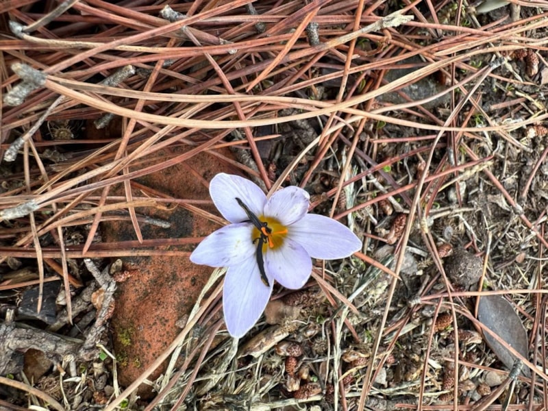 Aydın’ın Koçarlı ilçesinde, yağmurlar sonrası 15 günlük sürede açan Sultan Çiğdemi (Crocus Nerimaniae) çiçeği, jandarma ekipleri tarafından kontrol edildi.