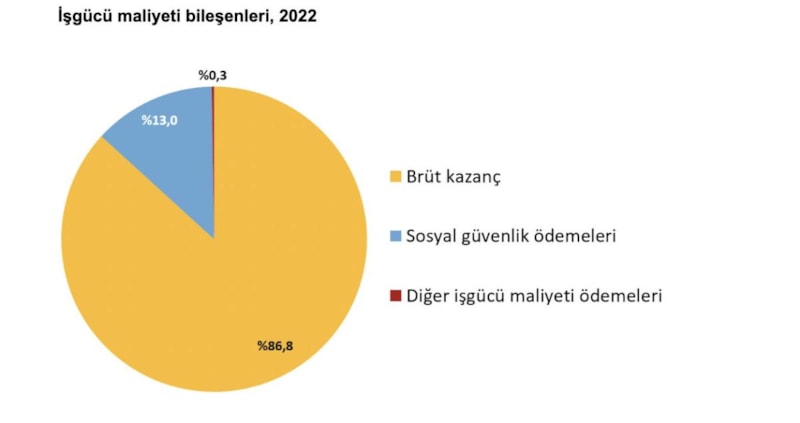 İş gücü maliyeti içinde brüt kazancın payı yüzde 86,8, sosyal güvenlik ödemelerinin payı yüzde 13 ve diğer iş gücü maliyeti ödemelerinin payı yüzde 0,3 olarak gerçekleşti.