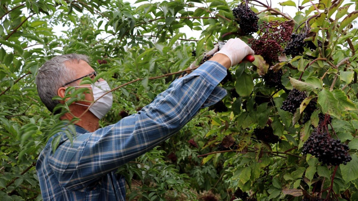 Bu amaçtan yola çıkan Trakya Tarımsal Araştırma Enstitüsü ekipleri, koronavirüs tedbirlerini alarak aronya ve mürver ağaçlarının yemişlerini özenle topluyor.