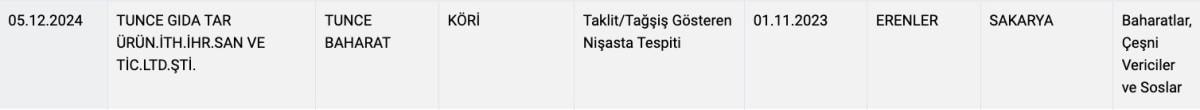 Listeye yapılan eklemeye göre, ısıl işlem görmüş piliç sucukta mekanik ayrılmış kanatlı eti, üzüm pekmezinde şeker ilavesi, köri baharatında taklit/tağşiş gösteren nişasta tespit edilirken bitkisel karışım yağı ile sumak, pul biber ve tatlı toz biberde gıdada kullanımına izin verilmeyen boya bulundu.