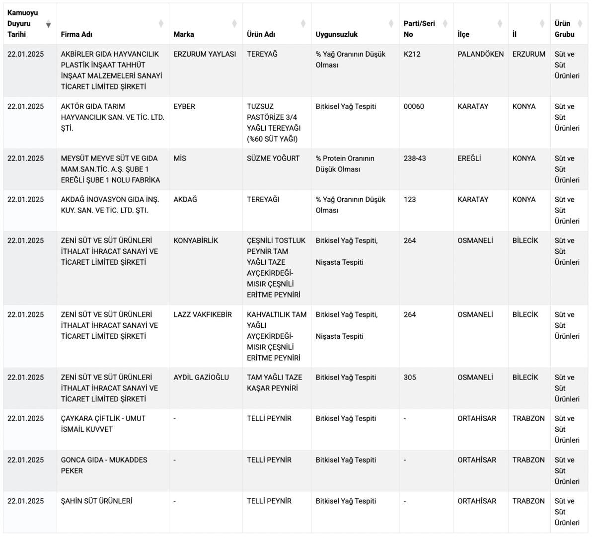 İşte bakanlığın açıkladığı taklit-tağşiş yapılan ve sağlığı tehlikeye düşürebilecek ürün ve firmalar...