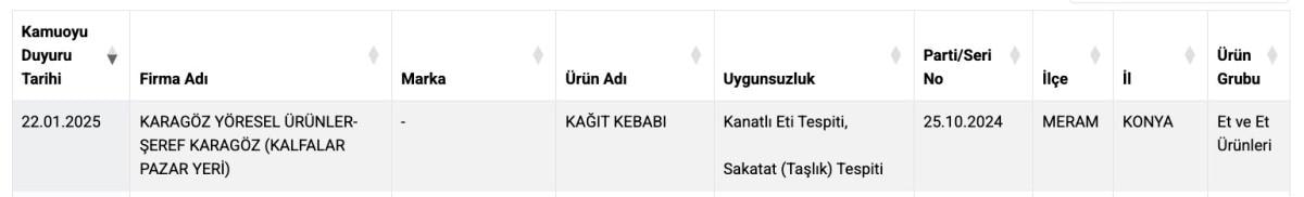 - Zeytinyağında tohum yağları, baharatlarda yabancı madde, piliç sucukta kanatlı eti ve sakatat, Etli ekmek harcında deri, kanatlı eti ve sakatat tespit edildi.