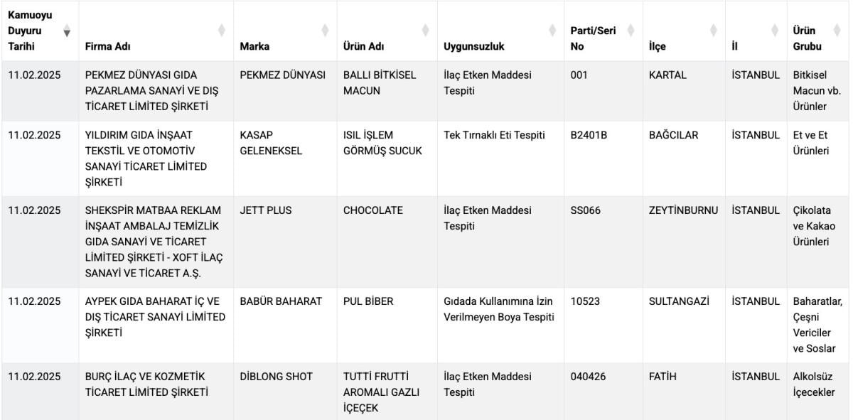 Tarım ve Orman Bakanlığı'nın Sağlığı Tehlikeye Düşürecek Gıdalar Listesi'ne 5 ürün eklendi ve bu listedeki toplam ürün sayısı 195'e çıktı.