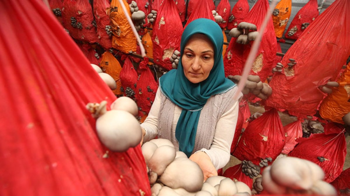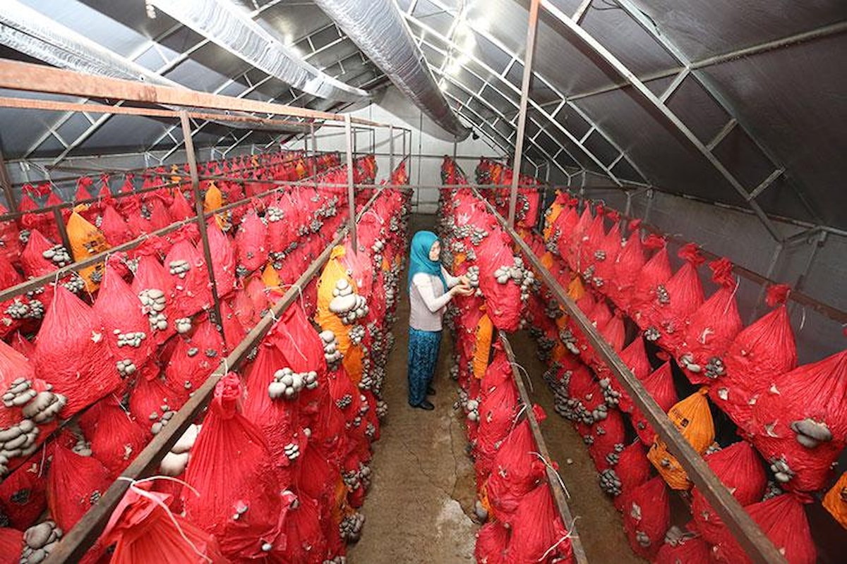 Balıkesirli kadın girişimci, evinin bahçesine kurduğu serada yılda 4 ton istiridye mantarı üretip, manav ve toptancılara satıyor.
