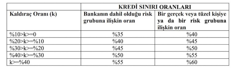 Ayrıca, kredi kullandırımları bakımından kalkınma ve yatırım bankalarında ana sermaye ve kaldıraç oranına dayalı bir düzenleme çerçevesi oluşturulmasına yönelik “Kalkınma ve Yatırım Bankalarında Kredi Sınırlarına İlişkin Tebliğ Taslağı” hazırlanmıştır. Söz konusu Tebliğ Taslağı ile kalkınma ve yatırım bankalarınca bir gerçek ya da tüzel kişiye veya risk gruplarına kullandırılabilecek kredilere ilişkin sınırların hesaplanmasına, raporlanmasına ve sınır aşımlarına ilişkin usul ve esasların belirlenmesi öngörülmektedir.