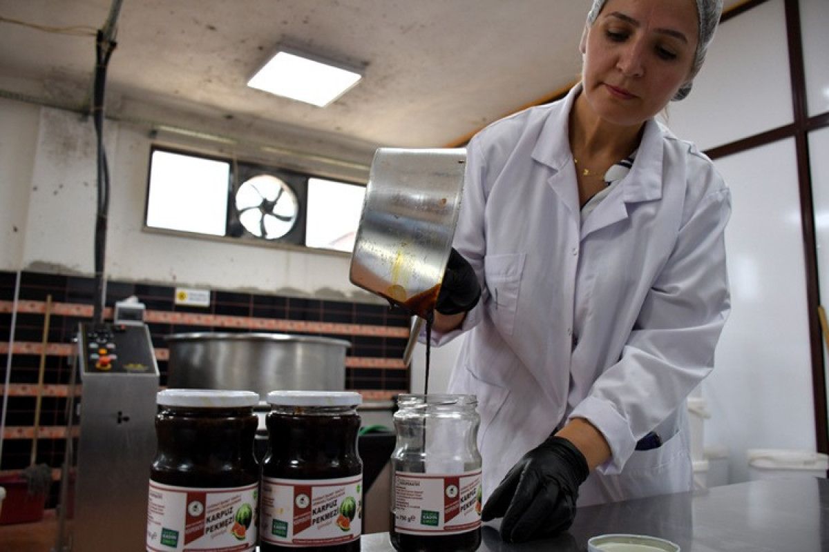 Kadınlar tarafından işlenen günlük 200 ton karpuz, pekmeze dönüştürülüyor.